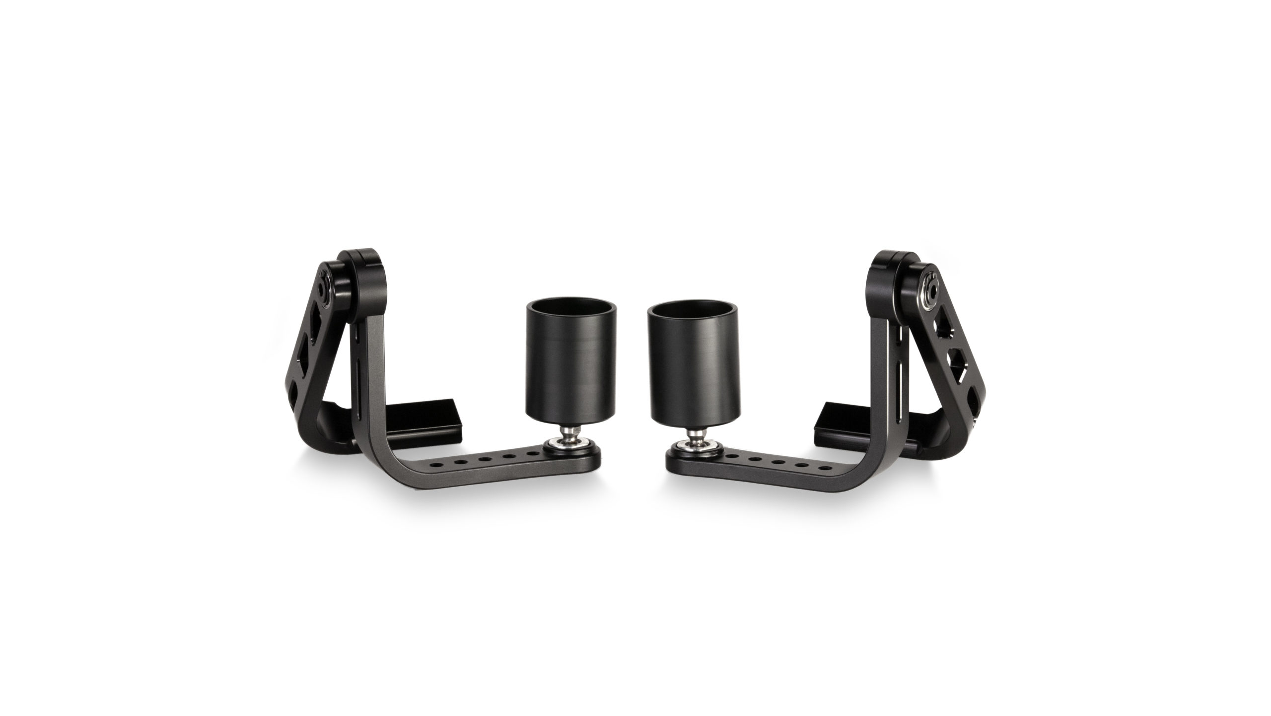 Wenn Sie einen Gimbal mit oberer Stange haben, ermöglichen die Armor Man 3.0 Support Cups eine einfache Lösung, um Ihren Gimbal an den mechanischen Armen des Armor Man 3.0 zu befestigen und zu lösen, während sich diese in der unteren Betriebsposition befinden. Wenn Sie den Armor Man am Gimbal befestigen möchten, setzen Sie einfach die Seitenarme des Gimbals in die Stützschalen ein und fassen Sie die Arme dann wieder wie gewohnt an, um den Betrieb zu starten. Wenn Sie den Betrieb einstellen möchten, docken Sie einfach den Gimbal an, greifen Sie die Stützschalen und lösen Sie sie von den Griffen.