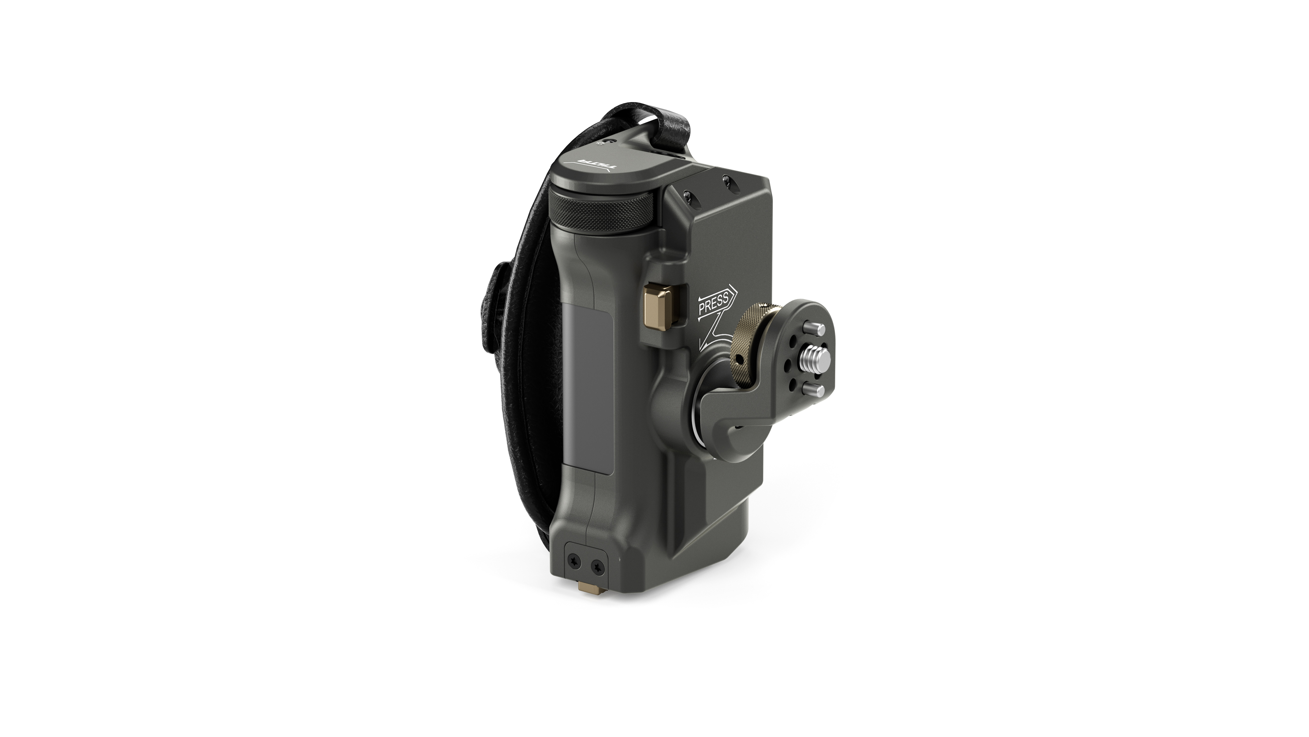 Ein Batterieanschluss an der Unterseite des Griffs ermöglicht es Ihnen, einen Sony F570 Akku zu verwenden, um den Nucleus Nano Motor über den 8V USB-C Stromausgang zu betreiben. Ein 12V DC-Ausgang ist ebenfalls in den Griff integriert.