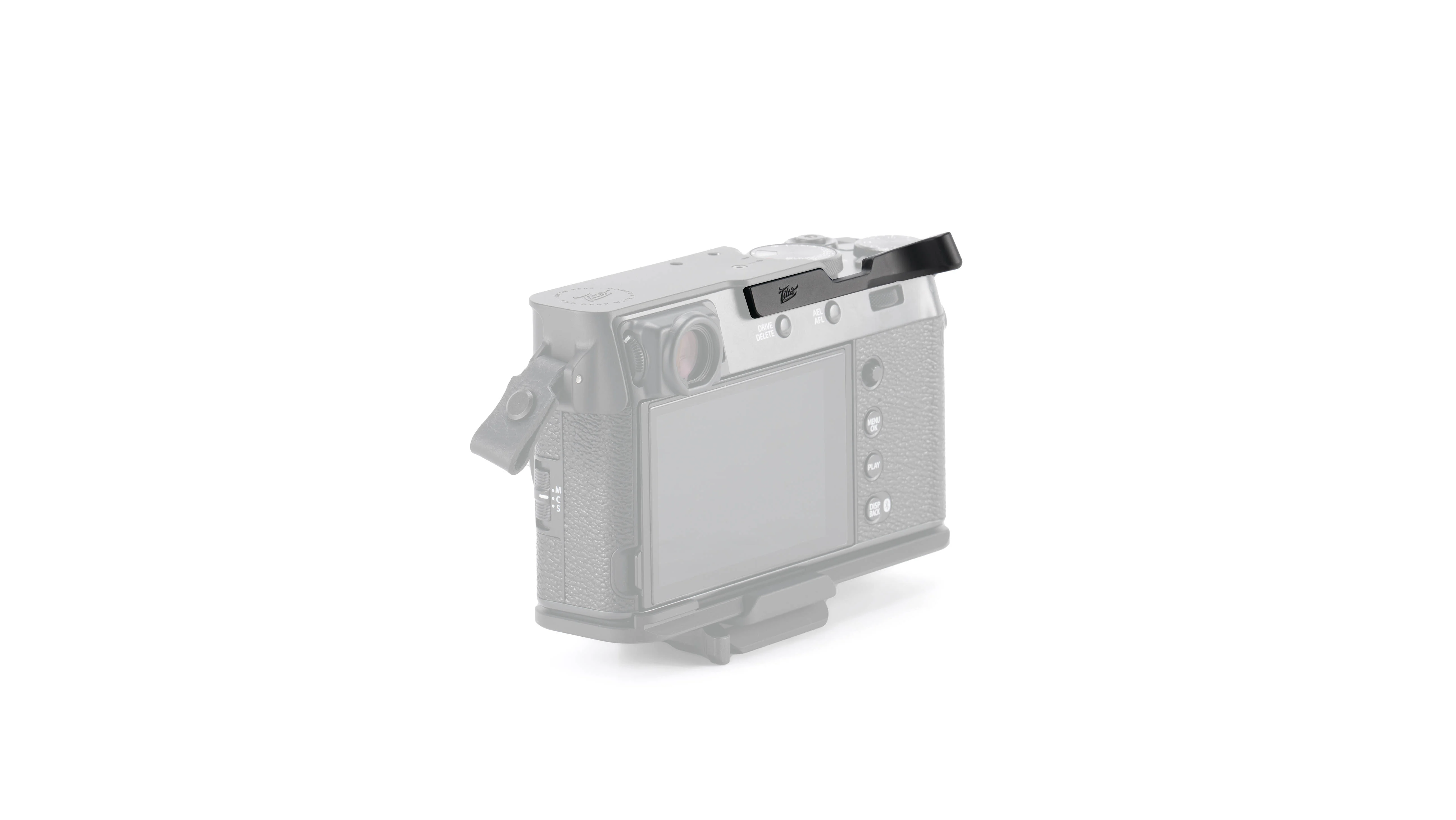 El soporte de pulgar para zapata es un accesorio mecánico ligero para la Fujifilm X100VI.