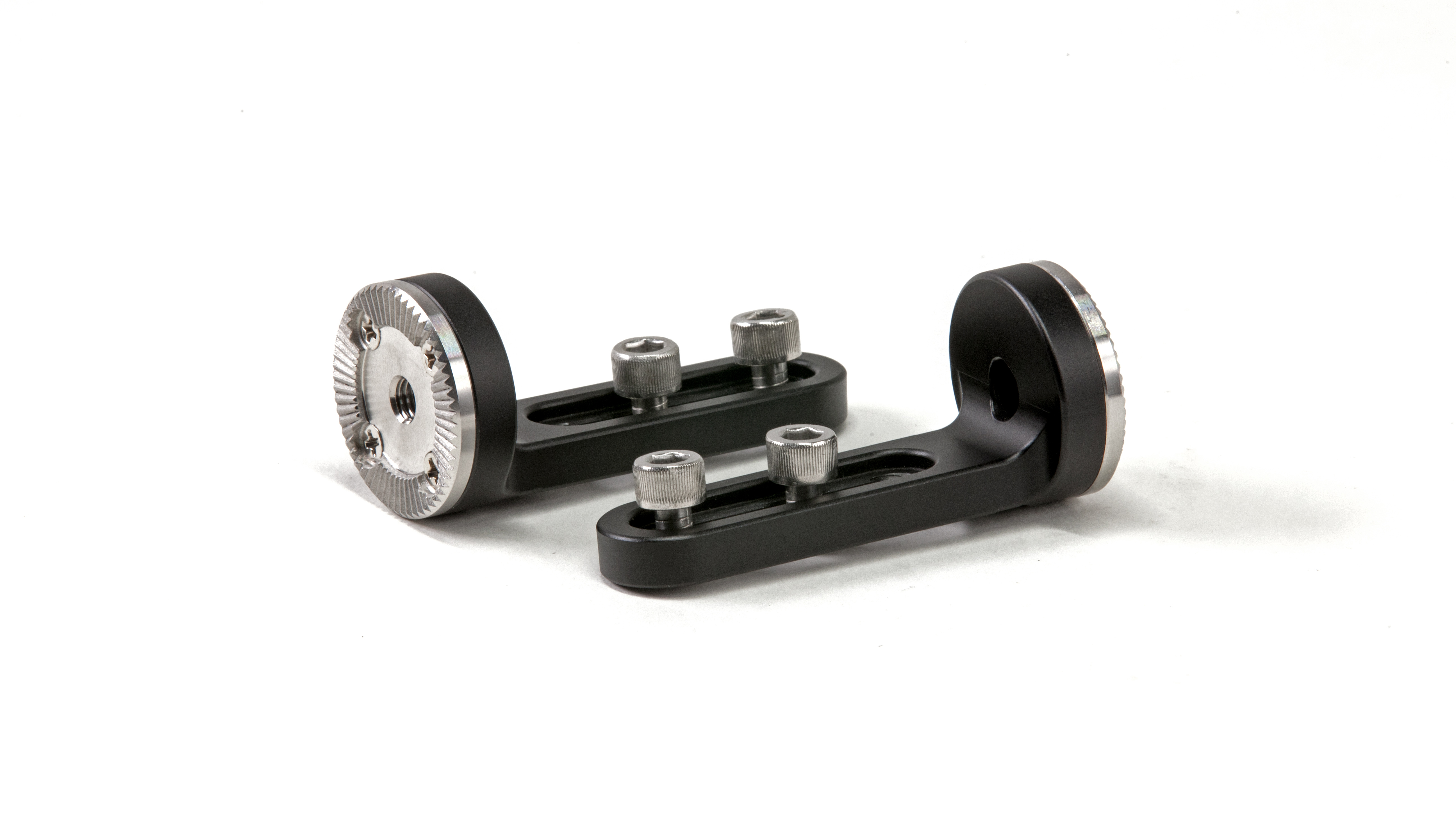 Queste connessioni Arri Standard Rosette sono collegate a slot di montaggio da ¼”-20 per permetterti di collegare gli accessori a rosetta a una varietà di superfici da ¼”-20, comprese le gabbie per telecamere o monitor che non dispongono già di connessioni a rosetta.