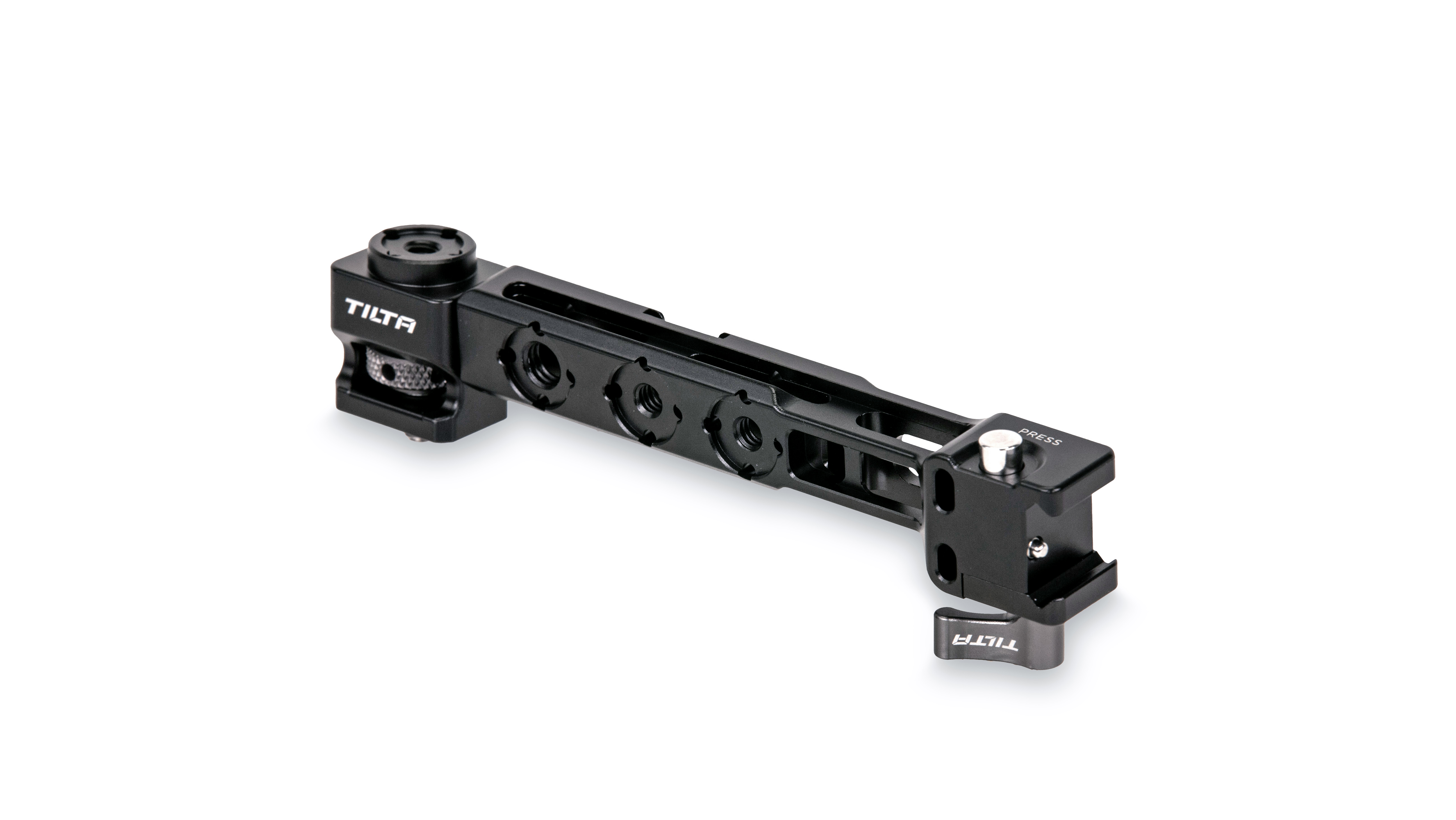 This bracket attaches to the side of the gimbal via a NATO rail connection and extends horizontally to the side to allow you to attach a small monitor to your setup via a finger-tightening 1/4″-20 screw.